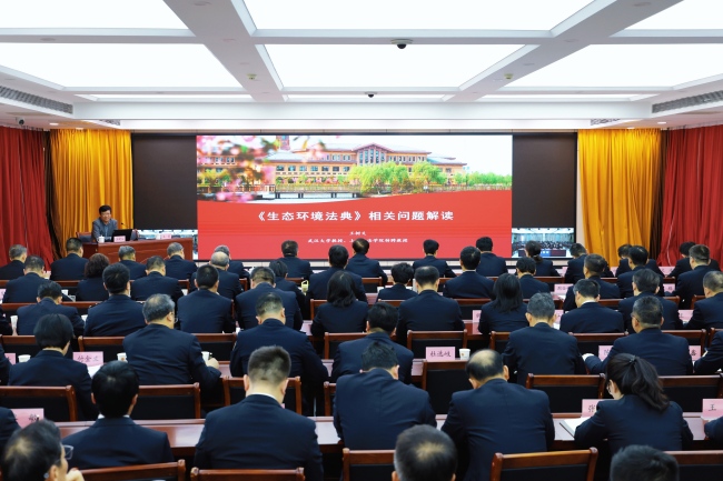 4月10日下午,省检察院举办党组理论学习中心组学习(扩大)会暨第二期陕检大讲堂,邀请武汉大学法学院教授、上海政法学院特聘教授王树义作题为《生态环境法典相关问题解读》的专题讲座。省检察院党组书记、检察长王旭光和其他在家院领导参加,党组副书记、副检察长王勇主持。