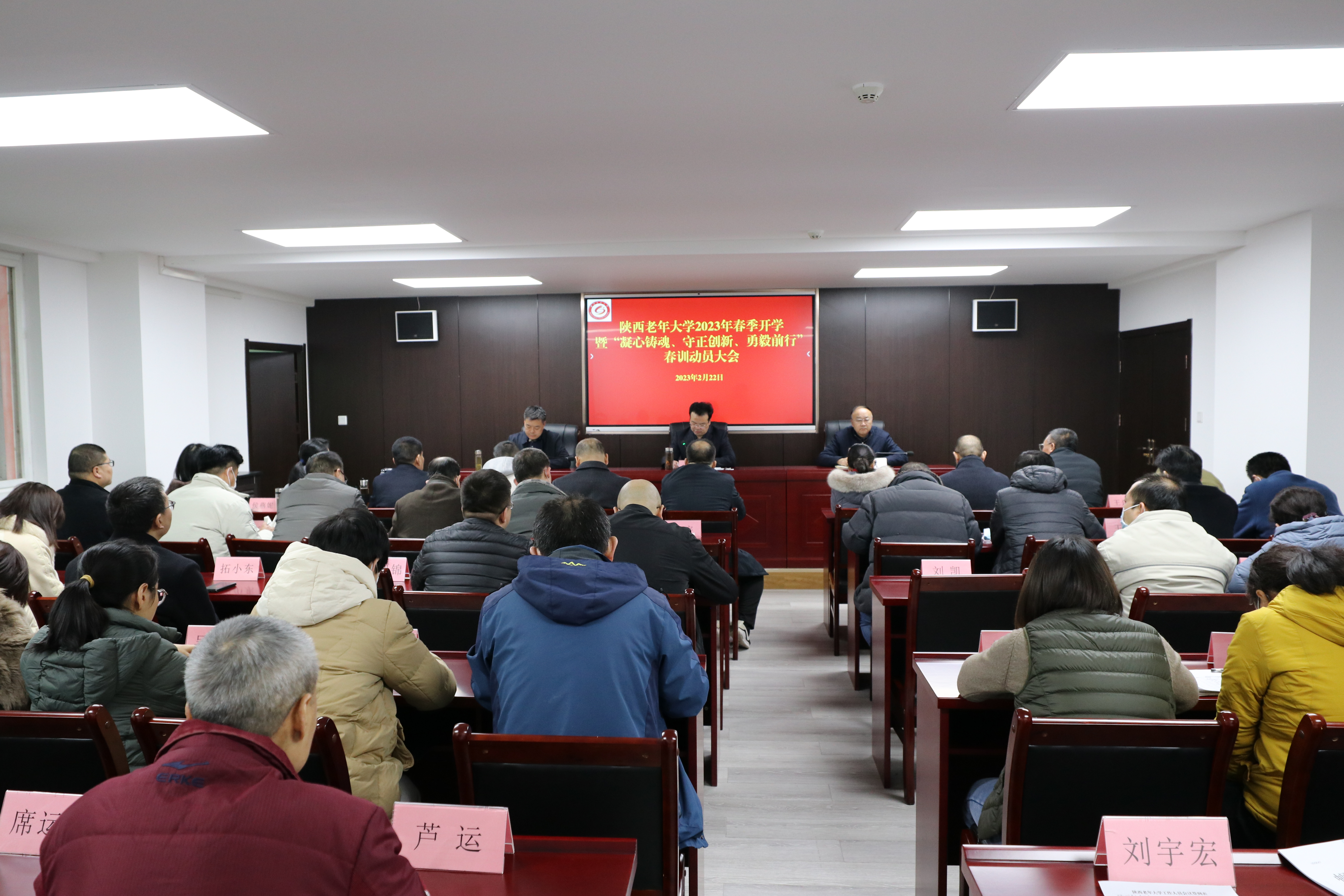 副校长詹升东、李斌出席,陕西老年大学全体干部职工参加。