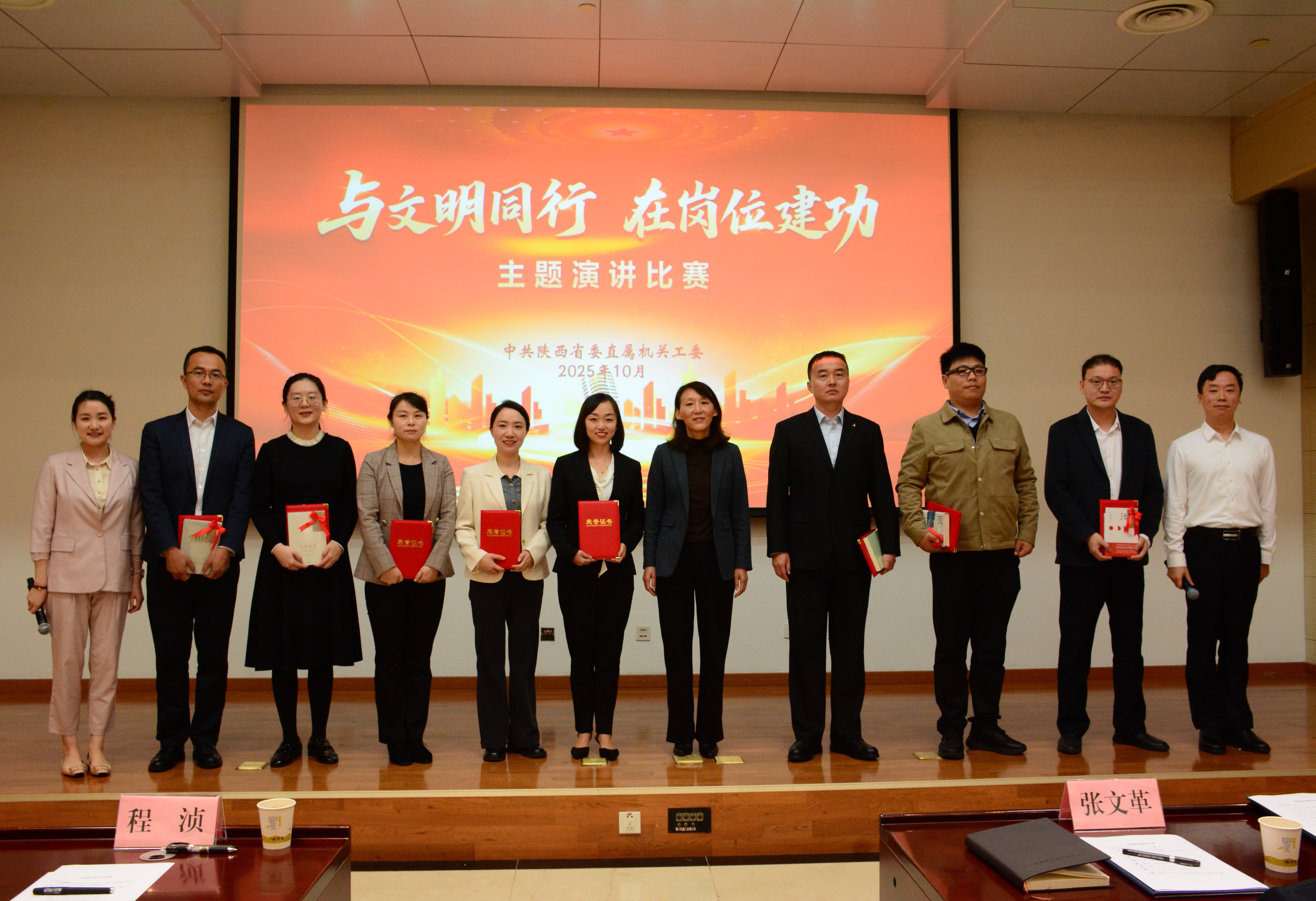 工委副书记程浈出席活动并给获奖选手颁奖,勉励机关干部持续深入学习贯彻习近平文化思想,切实做到学思用贯通、知信行统一,把今天的触动与热忱,转化为明天干事创业的不竭动力,以更加饱满的热情、更加昂扬的斗志、更加务实的作风,为谱写陕西新篇、争做西部示范,作出新的更大贡献。